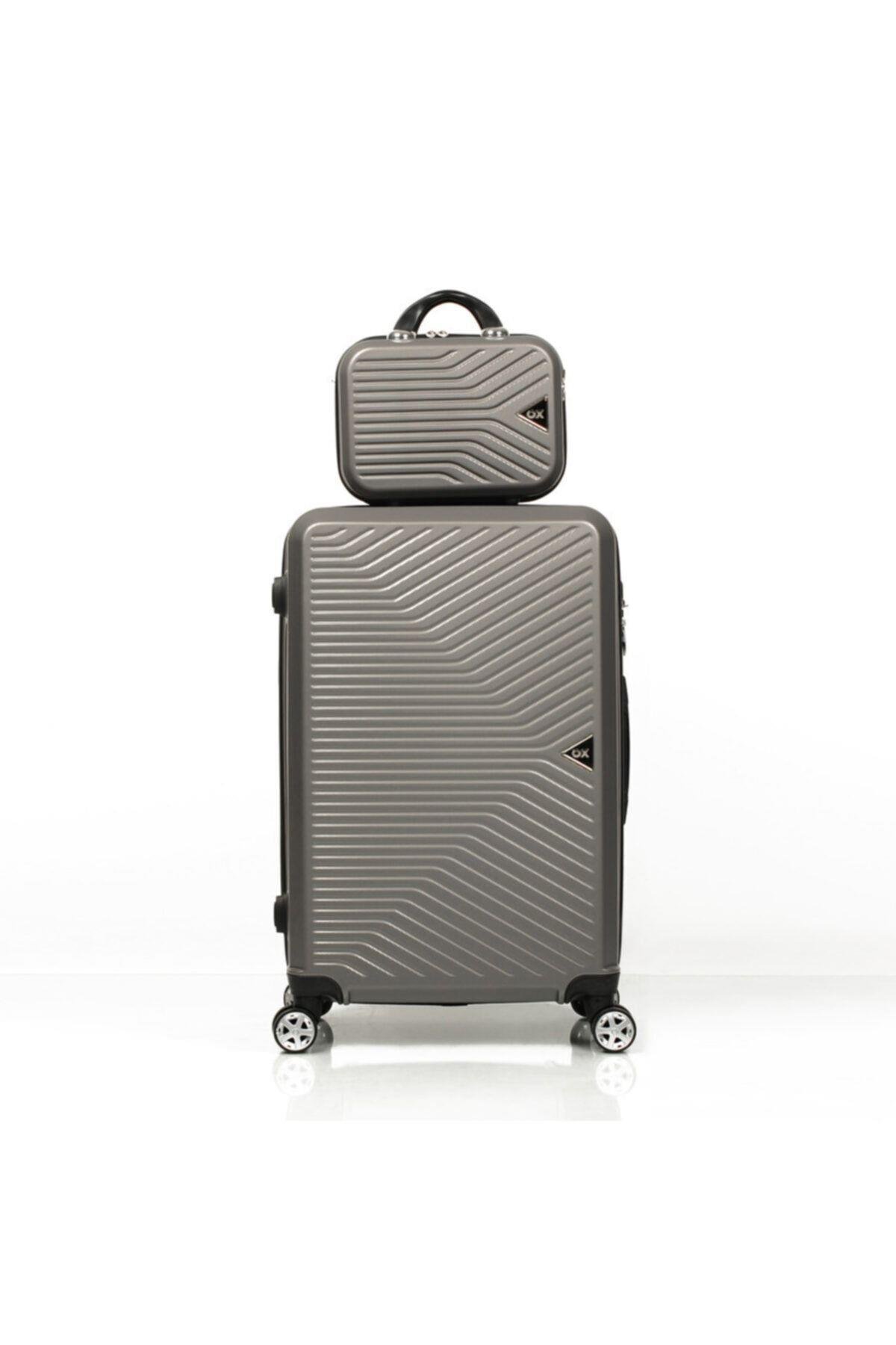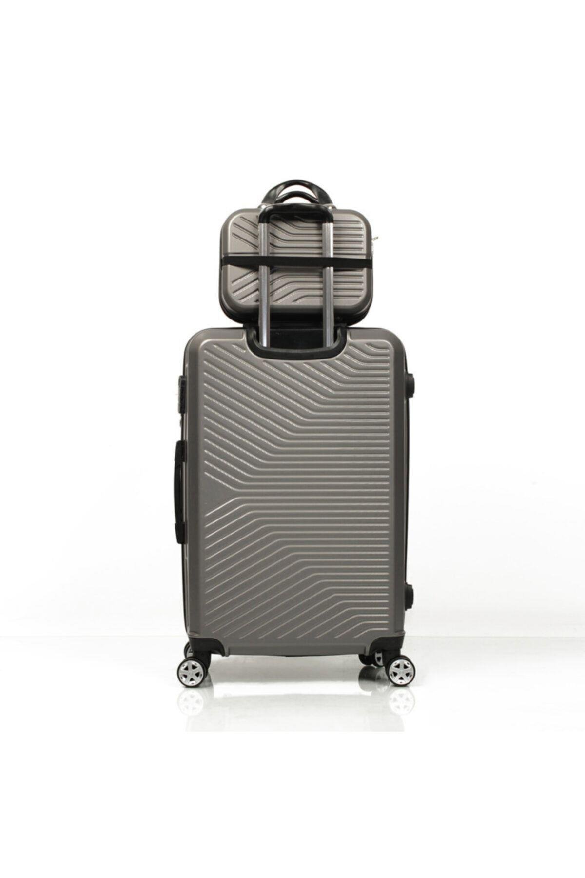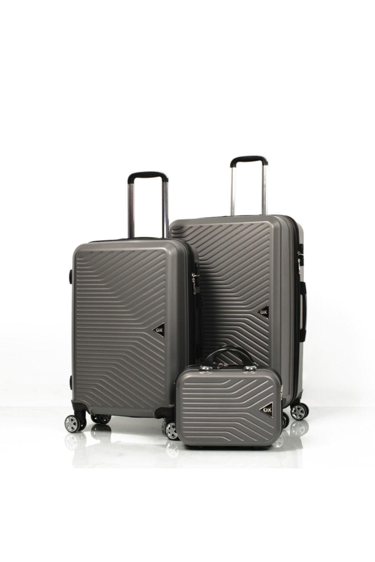 Premium 3 Lü Antrasit Valiz Seti (Büyük+orta+makyaj) (T165)