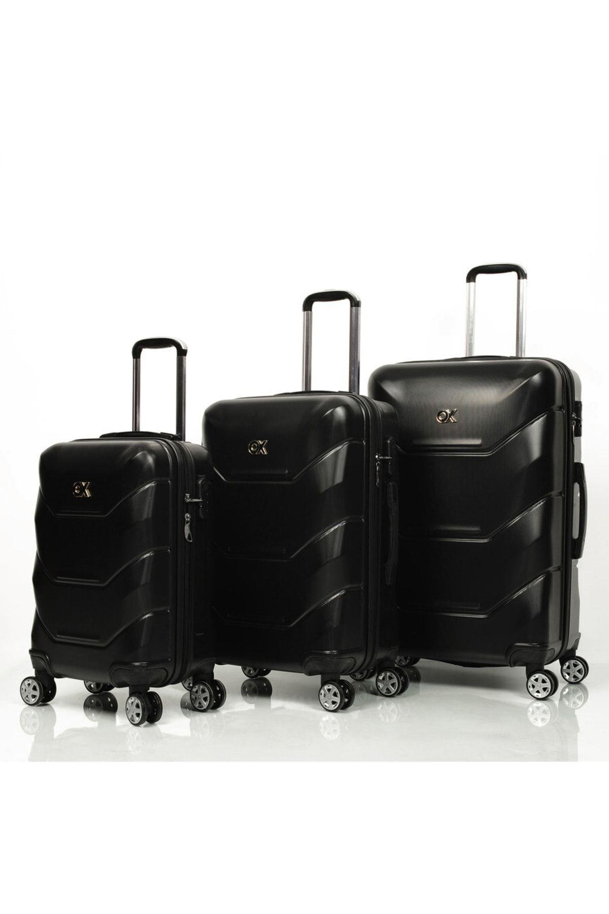 Exclusive 3 Lü Siyah Valiz Seti (büyük + Orta + Kabin ) (T103)