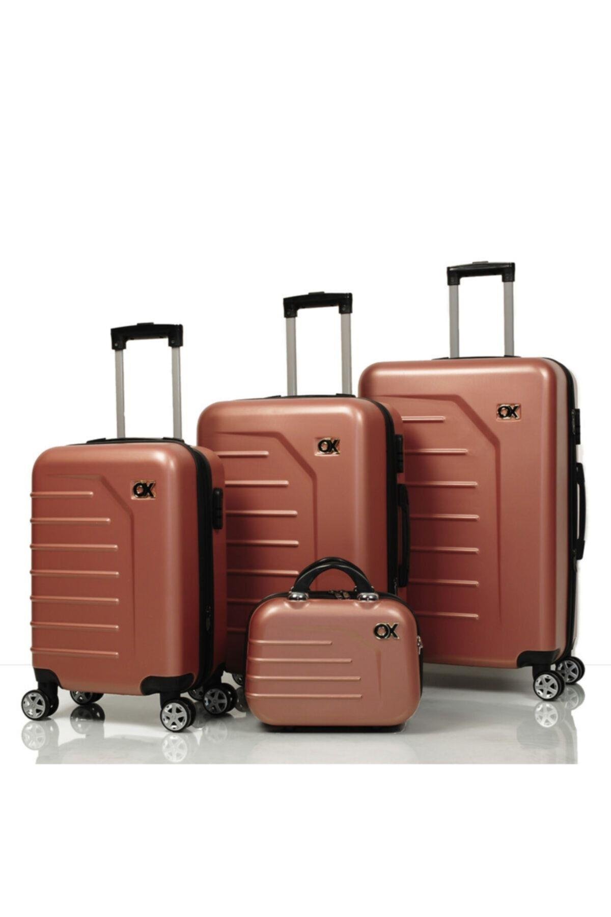 OX MUSCHA 4'LÜ ROSE GOLD VALİZ SETİ OX MUSCHA serisi ; hafif tasarımı ile seyahatlerinizde size extra yük olmaktan cıkacak. Silikon, sessiz ve birbirinden bağımsız 360° Dönebilen 4 Adet double tekerlek . Estetik teleskopik çek çek, Silikon kaplı (soft touch) elinizi acıtmayan, yumuşak tutma sapıları. Kombinasyon şifre; dilediğiniz numarayla kolayca değiştirebileceğiniz şifreli kilit sistemi eşyalarınız güvende kalır. Çift taraflı eşya koyulabilen fermuarlı ,Mesh separatör ve kelebek kayışlar eşyalarınızın dağılmasını engeller . Ürün VALİZ DÜNYASI fabrikalarında üretilmiş olup %100 TÜRK MALI'dır. Bu sebeple satış sonrası yedek parça tedariği ve servis sıkıntısı yaşamazsınız. OX markalı valizler, işçilik ve üretim hatalarına karşı 2 yıl garantilidir. *DÜNYACA ÜNLÜ FRANSIZ BREAU VERİTAS LABORATUVARLARINCA TEST EDİLMİŞ VE ONAYLANMIŞTIR.