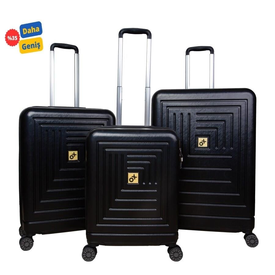 OX MAZE 3 LÜ SİYAH VALİZ SETİ (BÜYÜK + ORTA + KABİN )